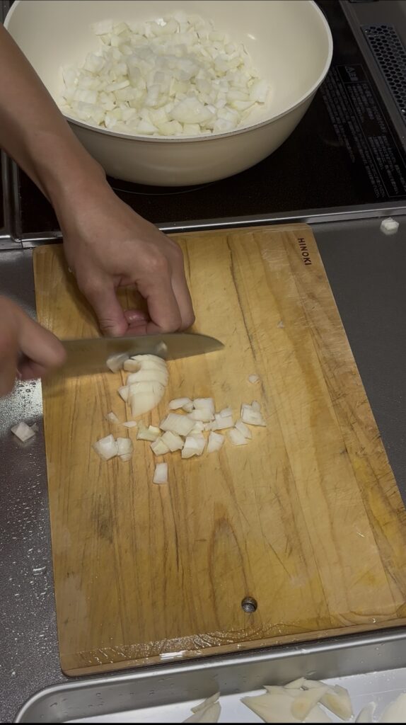1. まずは、玉ねぎをみじん切りに。