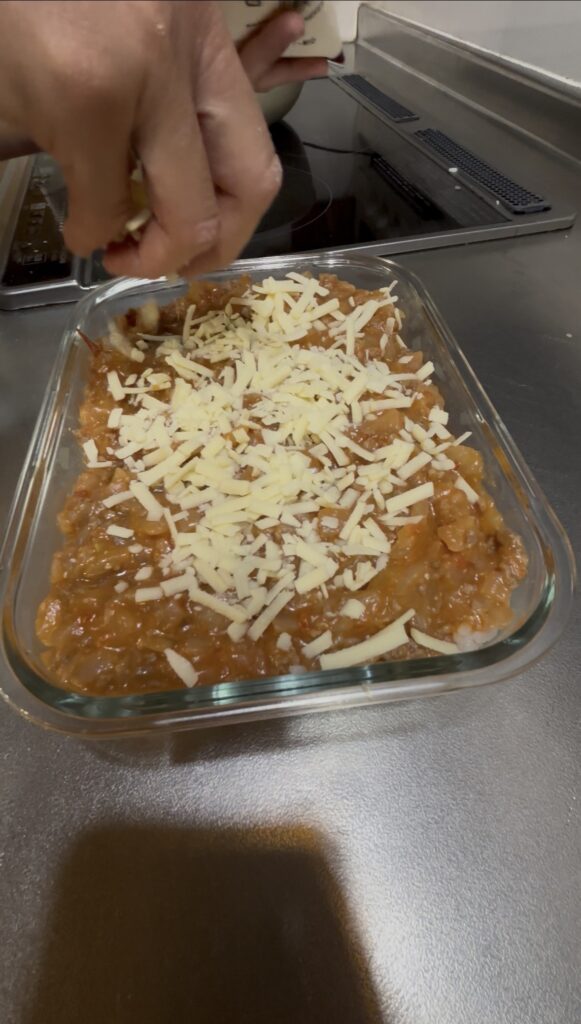 4. ごはんの上にソースをかけ、チーズをのせる。